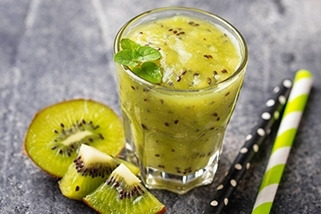 3. 果汁機中加入冰塊、奇異果、蜂蜜、銀耳湯攪打均勻後即可飲用。