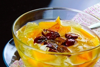 3. 加入銀耳露煮3分鐘,最後加入冰糖拌勻即可。