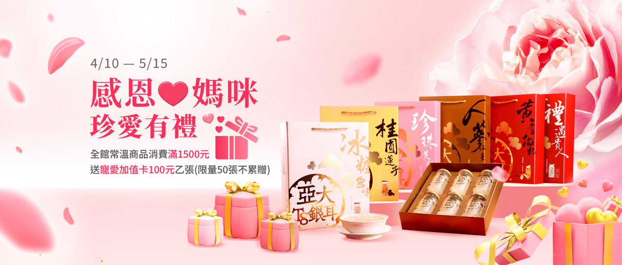4/10-5/15 購買常溫商品滿$1500送寵愛加值卡100元乙張(限量50張)