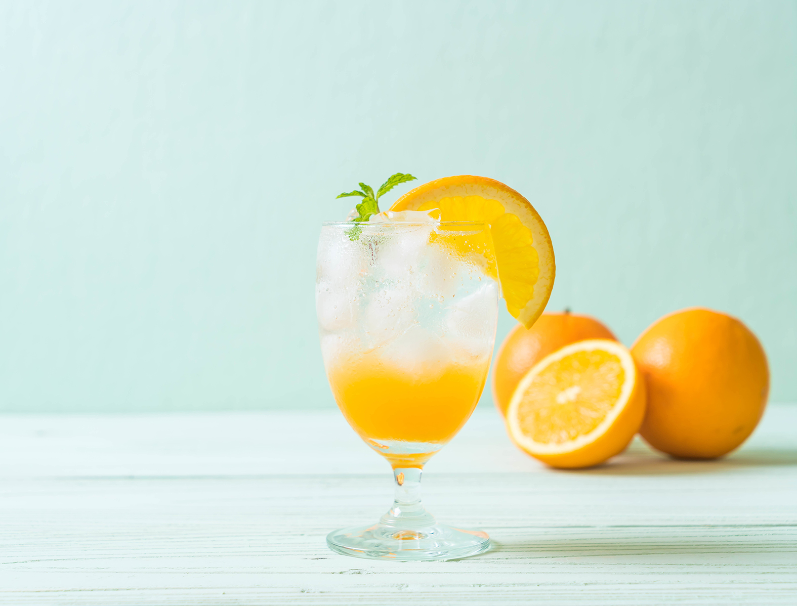3. 杯中依序加入冰塊、柳橙汁、銀耳湯。