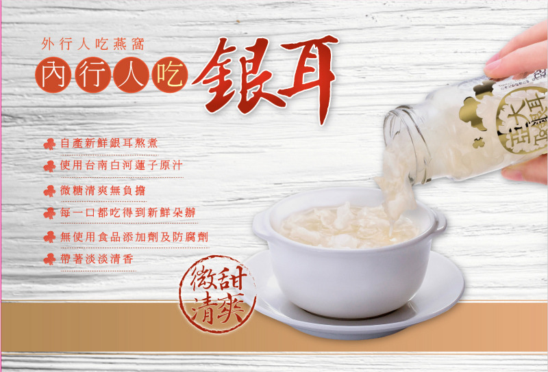 成 分:銀耳、水、冰糖、珍珠粉